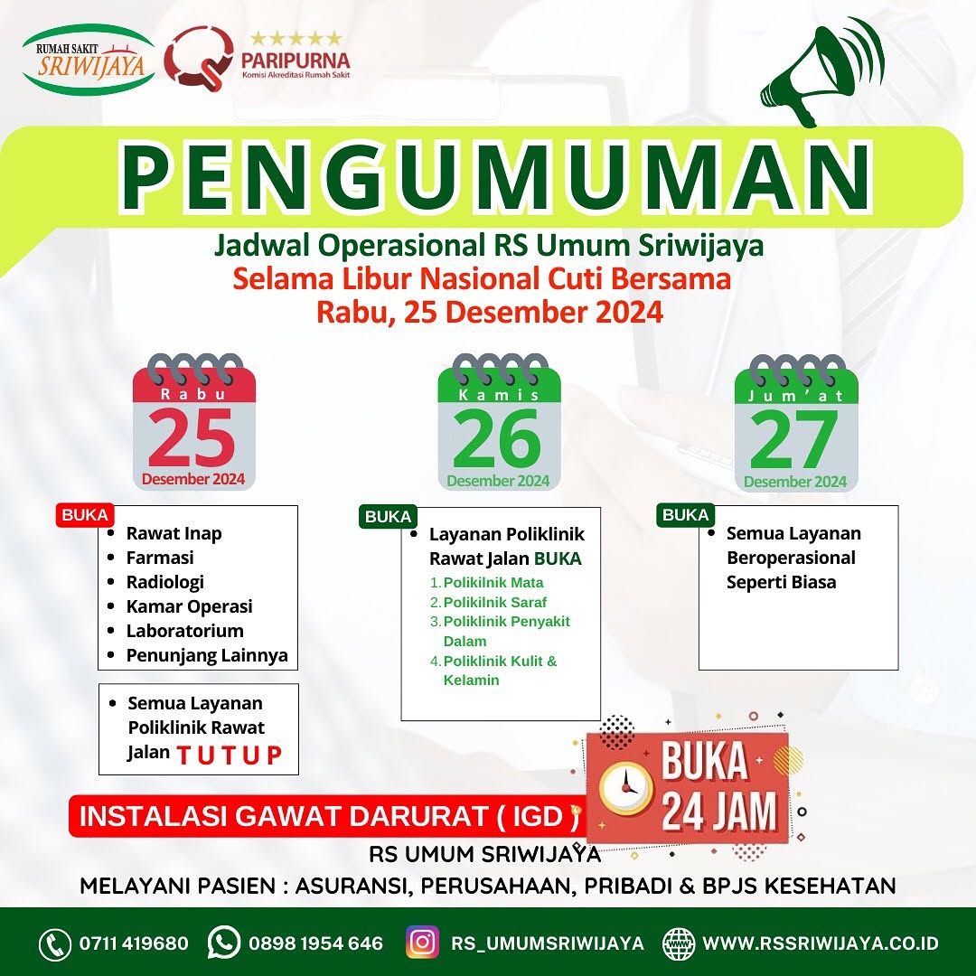 RS Umum Sriwijaya Melayani Pasien BPJS, Umum, Perusahaan & Asuransi.