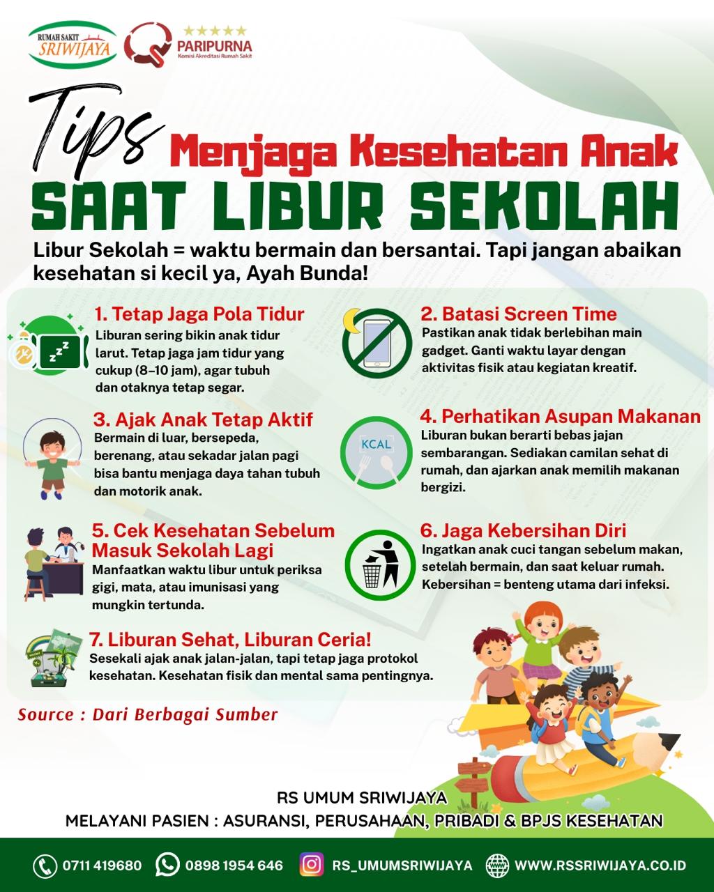Liburan sekolah adalah waktu yang dinanti-nantikan anak-anak untuk bermain dan bersantai. Tapi jangan sampai lalai menjaga kesehatan ya, Ayah Bunda!