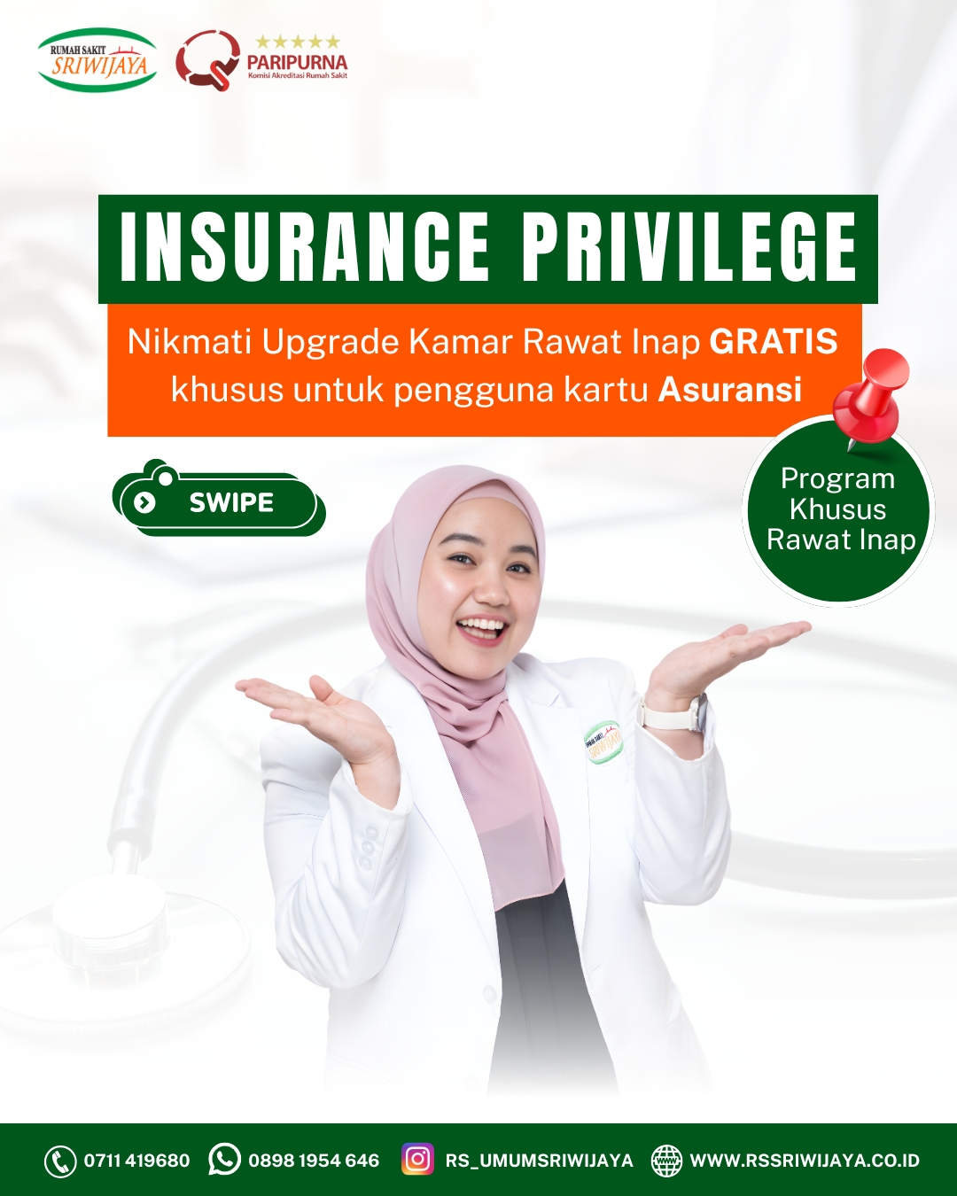 #RSUmumSriwijaya #InsurancePrivilege #UpgradeKamarGratis #RawatInapNyaman #PelayananParipurna #RumahSakitSriwijaya #Palembang #InfoRS #AsuransiKesehatan
